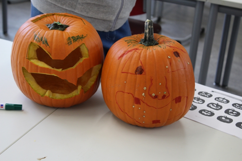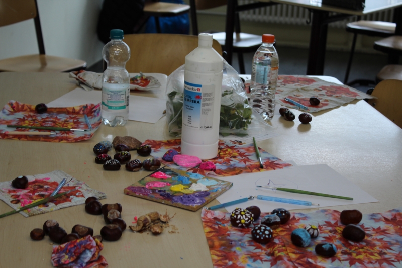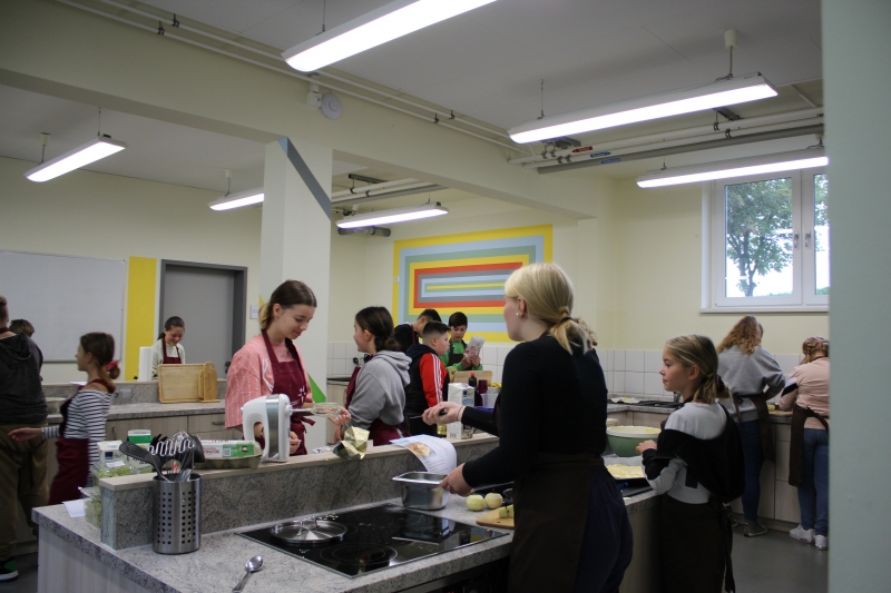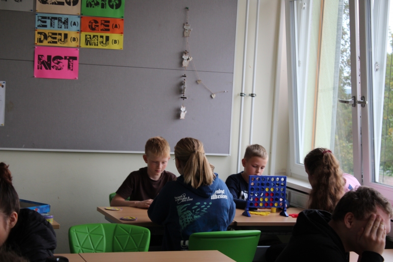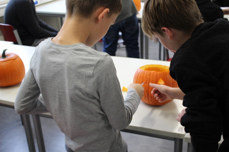 Danach verbrachten die Fünftklässlerinnen und Fünftklässler den traditionellen Herbsttag mit ihren Paten aus den 9. Klassen. In verschiedenen Gruppen wurde fleißig herbstliche Fensterdeko gebastelt, Kürbisse geschnitzt, Naturmaterialien kreativ gestaltet, gemeinsam gespielt oder sich innerhalb der Herbstolympiade an verschiedenen Stationen sportlich betätigt. Zum Abschluss gab es leckere Waffeln, Apfelkuchen und Käsespieße von der Kochgruppe. Das Technik-Team hat diesen Tag mit der Fotokamera begleitet und festgehalten, sodass alle einen Einblick in die verschiedenen Gruppen erhalten können.