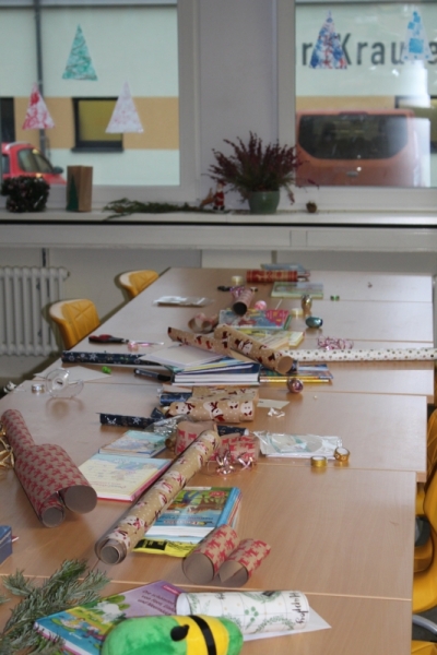 Die Weihnachtswoche startete mit einer liebegewonnen Tradition, die ja aus bekannte Gründen zwei Jahre ruhen musste. Unsere 8. Klassen gestalteten den kleinen Weihnachtstag für Viertklässler aus der Grundschule Krögis. Ob Lese Bude, Weihnachtssport oder Kekshäuser bauen…die Kleinen hatten viel Spaß und wurden liebevoll von den Großen begleitet. In der Holzwerkstatt im Keller entstanden dann noch schöne Geschenke, die unsere kleinen Gäste mit nach Hause nehmen konnten. Auch in Lommatzsch wurde Weihnachtsfreude verteilt – zwei Geschenkeverteiler – Teams besuchten Läden, Firmen und brachten kleine Weihnachtsgrüße. Die Begeisterung an diesem Tag war bei allen zu spüren – denn es ist eine besondere Erfahrung für unsere Großen sich zu sorgen, Geschenke zu geben und die Freude der Anderen zu spüren.
