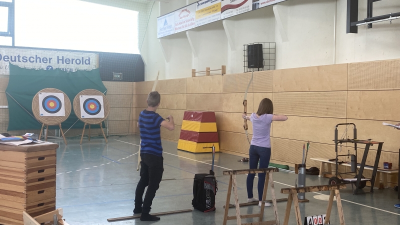 abends haben wir dann in der Schule übernachtet, lecker zusammen gegessen und einige haben sich am Bogenschießstand ausprobiert.