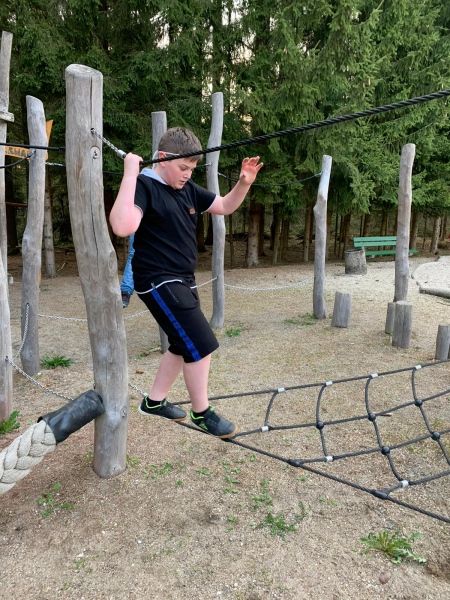 5c: Die Klassenfahrt nach Sebnitz war cool, außer Essen, Trinken und das Wandern am Montag. Dienstag haben wir gekegelt. Nice war das Tobeland mit Kletterwand und Soccerarena am Nachmittag. Mittwoch war Zimmerreinigung und Heimreise. Donnerstag und Freitag haben wir mit Eis, Brettspielen und Tischtennis in der Schule verbracht. (von John Schmidt, 5c)