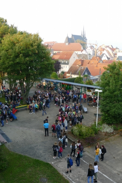 - Start – wir treffen uns alle bis 7:15 Uhr auf dem Hof vor dem Haupteingang. Die Klassen werden mit ihrem Klassenleiter gemeinsam ins Schulhaus und in ihr Zimmer gehen. Damit werden alle neuen Schülerinnen und Schüler gleich freundlich „mitgenommen“ und müssen nicht alleine suchen.