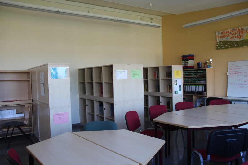 Am Dienstag, den 30. April 2019 in der Frühstückspause, öffnete erstmals die Schulbibliothek an der OS Lommatzscher Pflege.  In sorgfältiger Arbeit waren die Schüler des Wahlbereichs Klasse 8 „Bibliothek“ in den letzten Wochen damit beschäftigt, den Bücherbestand einzusortieren und zu registrieren. In Zukunft wird die  Schulbibliothek durch ein Team von sechs Schülern betreut und organisiert. Der Bücherbestand umfasst Lehr- und Fachbücher der Bereiche Sprachen, Natur- und Gesellschaftswissenschaften, aber auch Freizeitliteratur ist hier zu finden. Eine Leseecke bietet den Schülern Raum zum „Schmökern“ und Verweilen. Außerdem soll die Bibliothek die Möglichkeit geben, während des Unterrichts die vorhandenen Medien zu verwenden und neben der Literatur- und Bücherrecherche, auch die vorhandenen Laptoparbeitsplätze zur Internetrecherche zu nutzen.