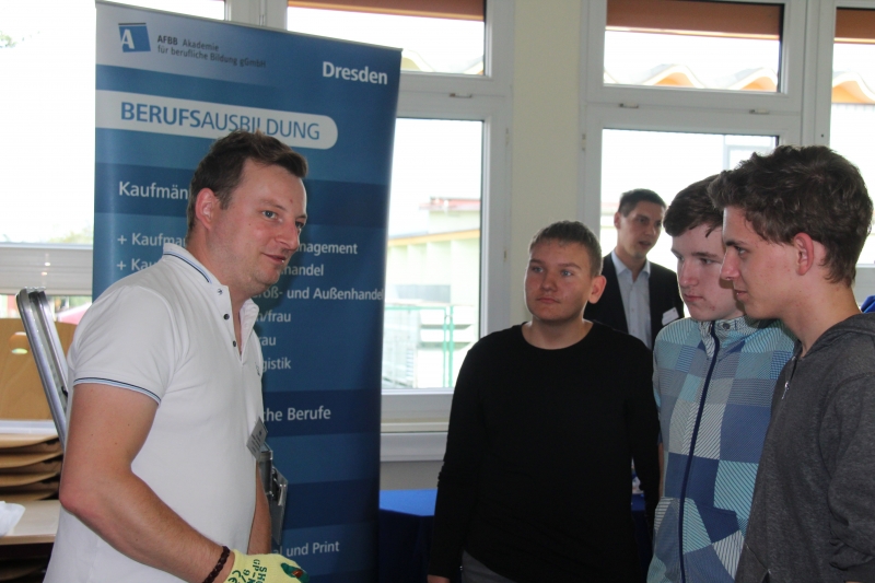 Unter dem Motto „Meine Ausbildung – Hier in meiner Heimat!“ stellten sich am 14.09.2017 27 Betriebe, Unternehmen und Einrichtungen aus der Region vor und informierten über konkrete Ausbildungsberufe und aktuelle Angebote, wie z. B. Praktika oder Ferienjobs. Im Mittelpunkt dieser Ausbildungsmesse standen in diesem Jahr die möglichen beruflichen Perspektiven für Schüler in der Region Lommatzscher Pflege und im Landkreis Meißen. Die Schüler und Eltern kamen unmittelbar mit Vertretern der Betriebe, Ausbildungs-verantwortlichen bzw. Auszubildenden zu Fragen rund um die Ausbildung ins Gespräch und ließen sich beraten.