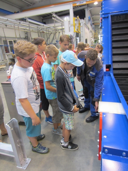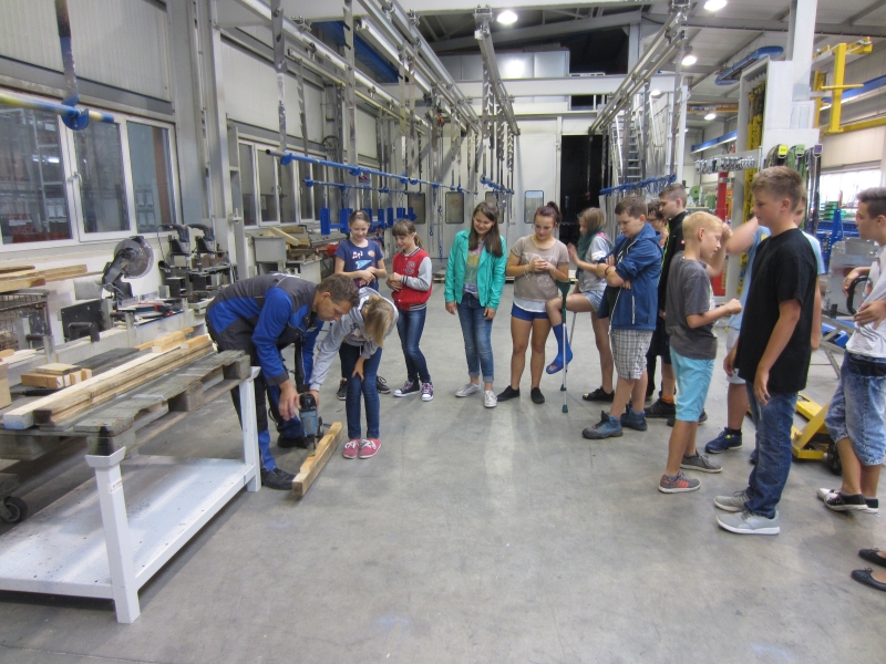 Unsere Klasse 6a besuchte am Ende der Schuljahreseinstiegswoche die Firma Kühne Förderanlagen und Sondermaschinenbau. Unsere Schüler erlebten eine interessante und sehr praktische Betriebs Besichtigung. Es machte viel Spaß, sich an den Maschinen unter der strengen Aufsicht der Mitarbeiter, selbst auszuprobieren.
