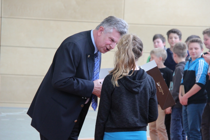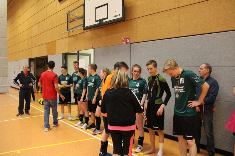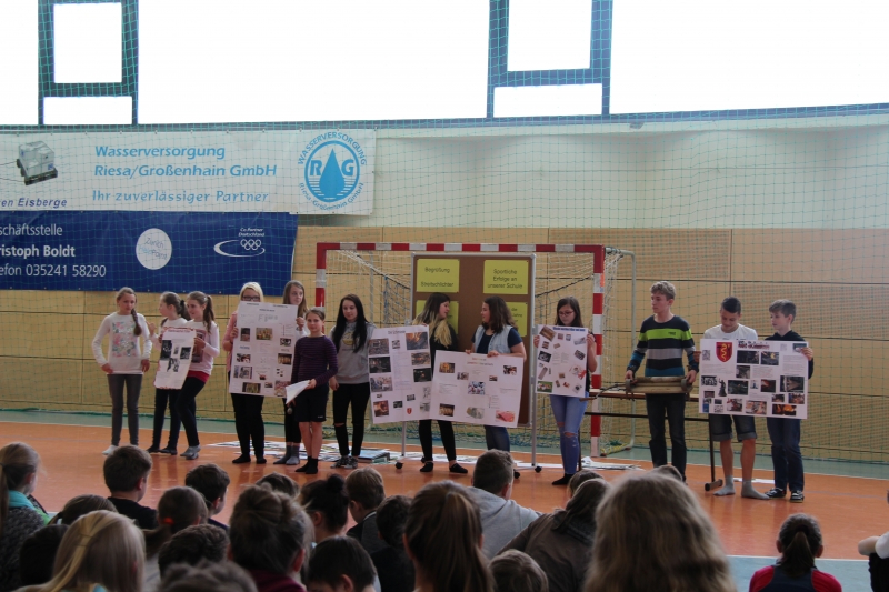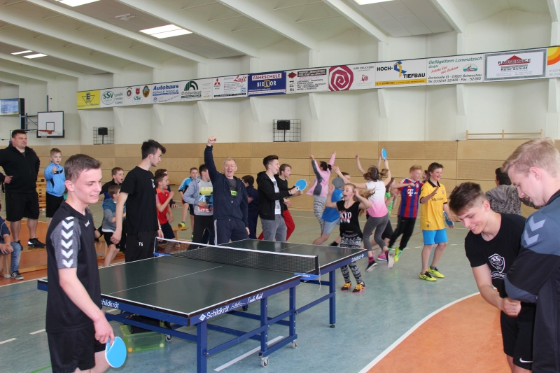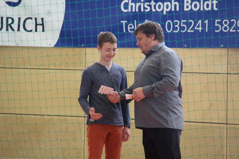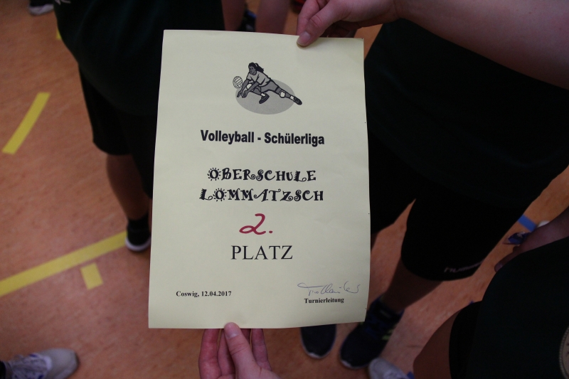 Am 12. 4. 2017 fand in Coswig die Finalrunde der Volleyball – Schülerliga statt. Unsere Mannschaft hatte sich souverän mit klaren Siegen in der Vorrunde durchgesetzt und Platz 1 belegt. In der Endrunde spielten die drei ersten Teams um den Sieg. Leider gingen wir etwas gehandicapt in das Turnier. Eric Ranft, ein wichtiger Spieler, war erkrankt. Desweiteren mussten unsere Mädchen alle Sätze ohne Auswechslung und Pause durchspielen, was sich im Verlauf der Spiele noch bemerkbar machen sollte. Das 1. Spiel gegen die OS Coswig wurde 2:0 ( 25:17 , 25:19 ) gewonnen. Im 2. Match besiegte die OS Triebischtal die Coswiger nach großem Kampf mit 2:1 ( 25:22 , 14:25 , 15:11 ). Im entscheidenden Spiel kam es nun zur Neuauflage des letzten Jahres Lommatzsch gegen die OS Meißen Triebischtal. Der 1. Satz wurde recht sicher mit 25:18 gewonnen. Im nächsten schlichen sich viele individuelle Fehler ein, Fehlaufschläge, sowie Annahmefehler, die zum Satzverlust führten. ( 14:25 ) Nun musste der dritte Satz entscheiden. Triebischtal begann sehr druckvoll und setzte ihre längste und beste Spielerin des Turniers sehr variabel ein und ging mit 2 Punkten Vorsprung in den letzten Wechsel. Trotz großer Einsatzbereitschaft konnte der letzte Satz nicht gewonnen werden. ( 15: 12 für Meißen ) Somit endete das Spiel 2:1 für dieTriebischtaler. Natürlich waren alle enttäuscht und niedergeschlagen, weil es für die meisten der letzte Wettkampf für unsere Schule war, den alle mit einem Sieg beenden wollten. Glückwunsch und danke für eure gezeigten Leistungen!