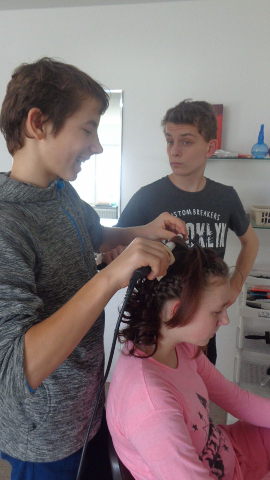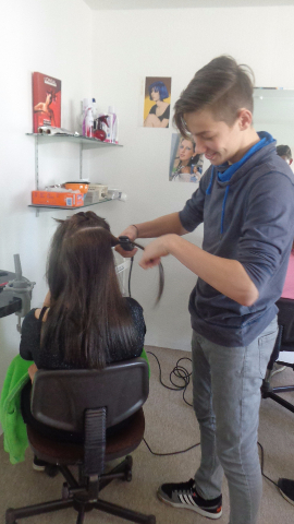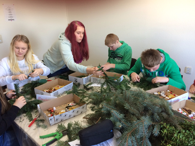 In Medien haben wir Bilder bearbeitet und eine Weihnachtskarte kreiert. Im Berufsfeld Holz bauten wir einen Teelichthalter. Als wir dann beim Lager waren, haben wir ein Angebot, eine Bestellung und einen  Lieferschein am Computer  geschrieben. Danach  waren wir beim Friseur und haben Puppenköpfen die Haare  gefärbt, gewaschen, Locken mit Lockenwickler gedreht, geföhnt  und frisiert. Anschließend haben wir uns die Haare gegenseitig gestylt. Am nächsten Tag lernten wir die Berufe Gärtner  und Florist  kennen. Dort haben wir ein Weihnachtsgesteck gebastelt und es mit Schneespray und  Rosegold  angesprüht.